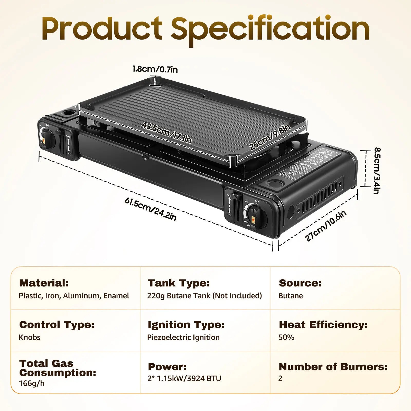 Camping Stove Size: 61.5*27*8.5cm/24.2*10.6*3.4in