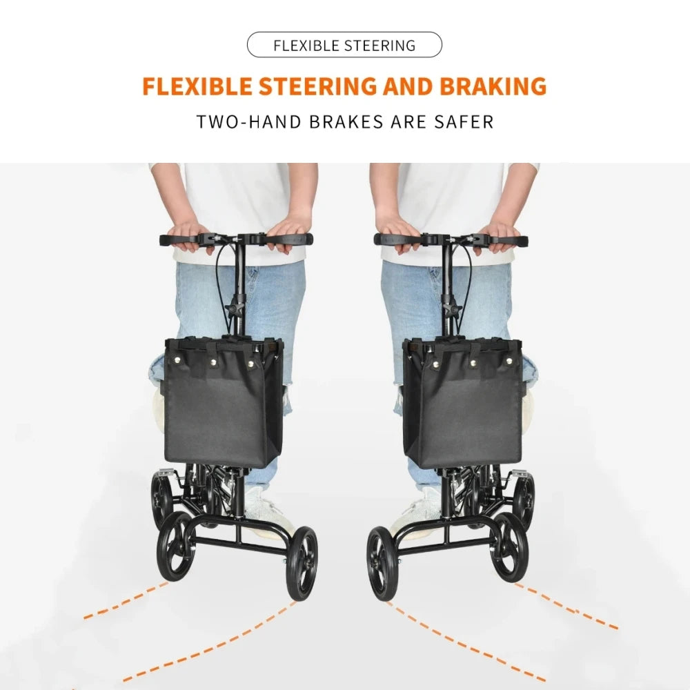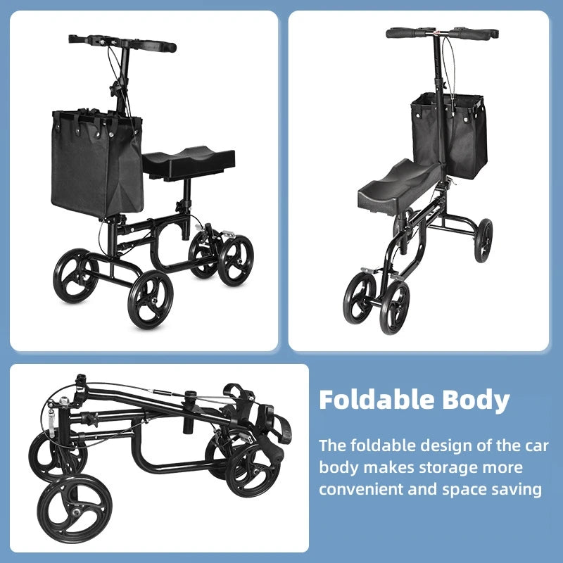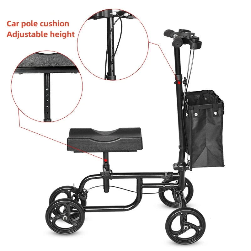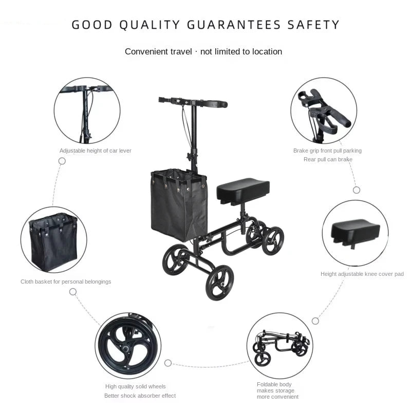 Elderly Disabled Knee Walker Foldable Seated Training Household Auxiliary Training Crutches Wheeled Trolley Four-wheeled Walker